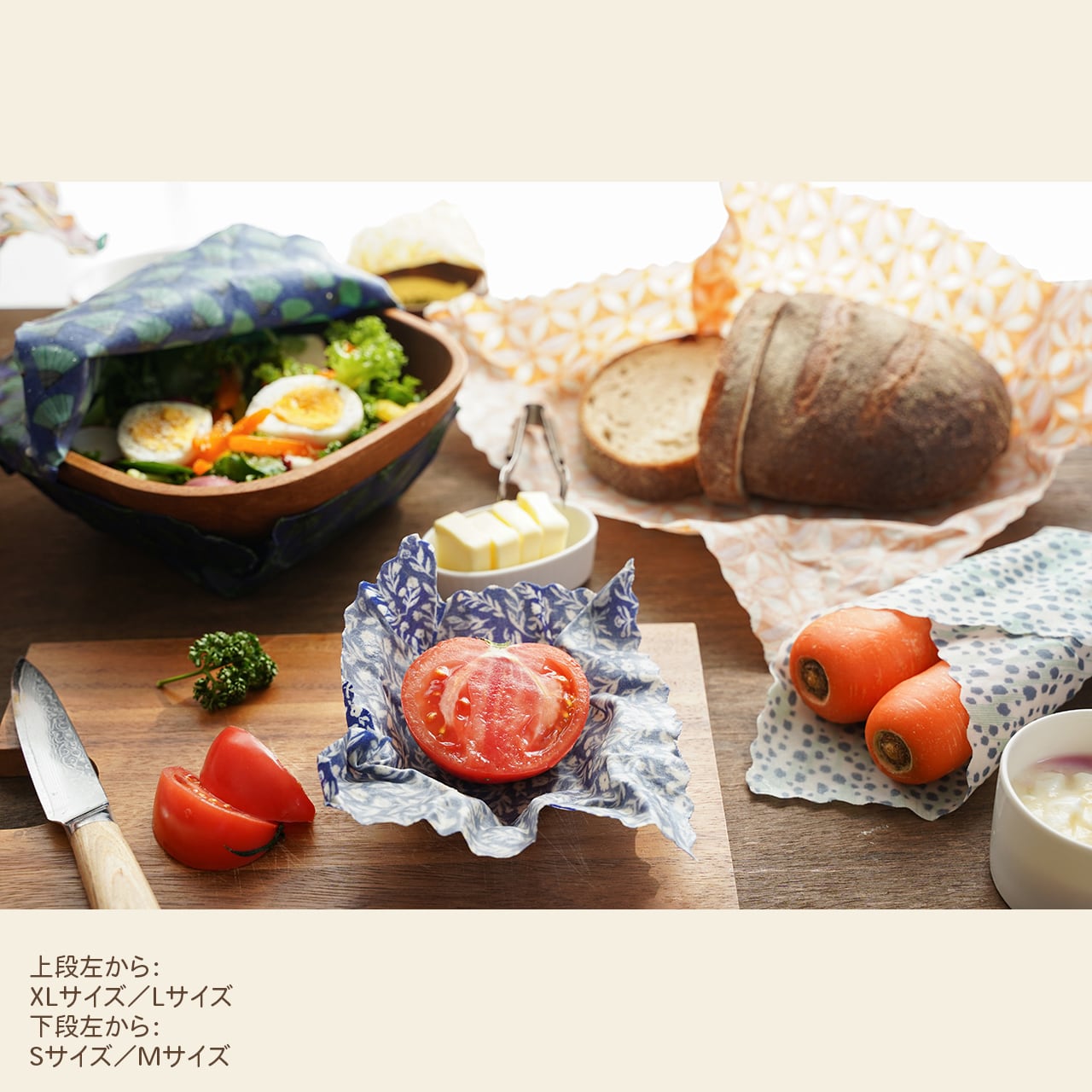 地球に優しい、プラスチックを使わないオーガニック・フードラップ(みつろうラップ)。